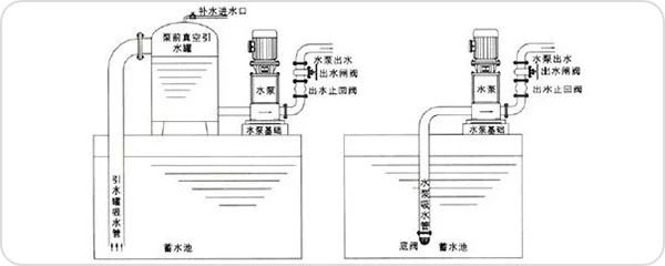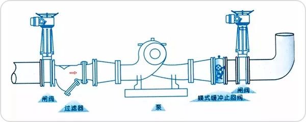 另一種是安裝在水泵的后方。這種安裝方法是液面高于水泵的情況下,方便啟停水泵時不用關水泵出水閥,特別是對于母管制水泵系統,防止發生倒流的情況。